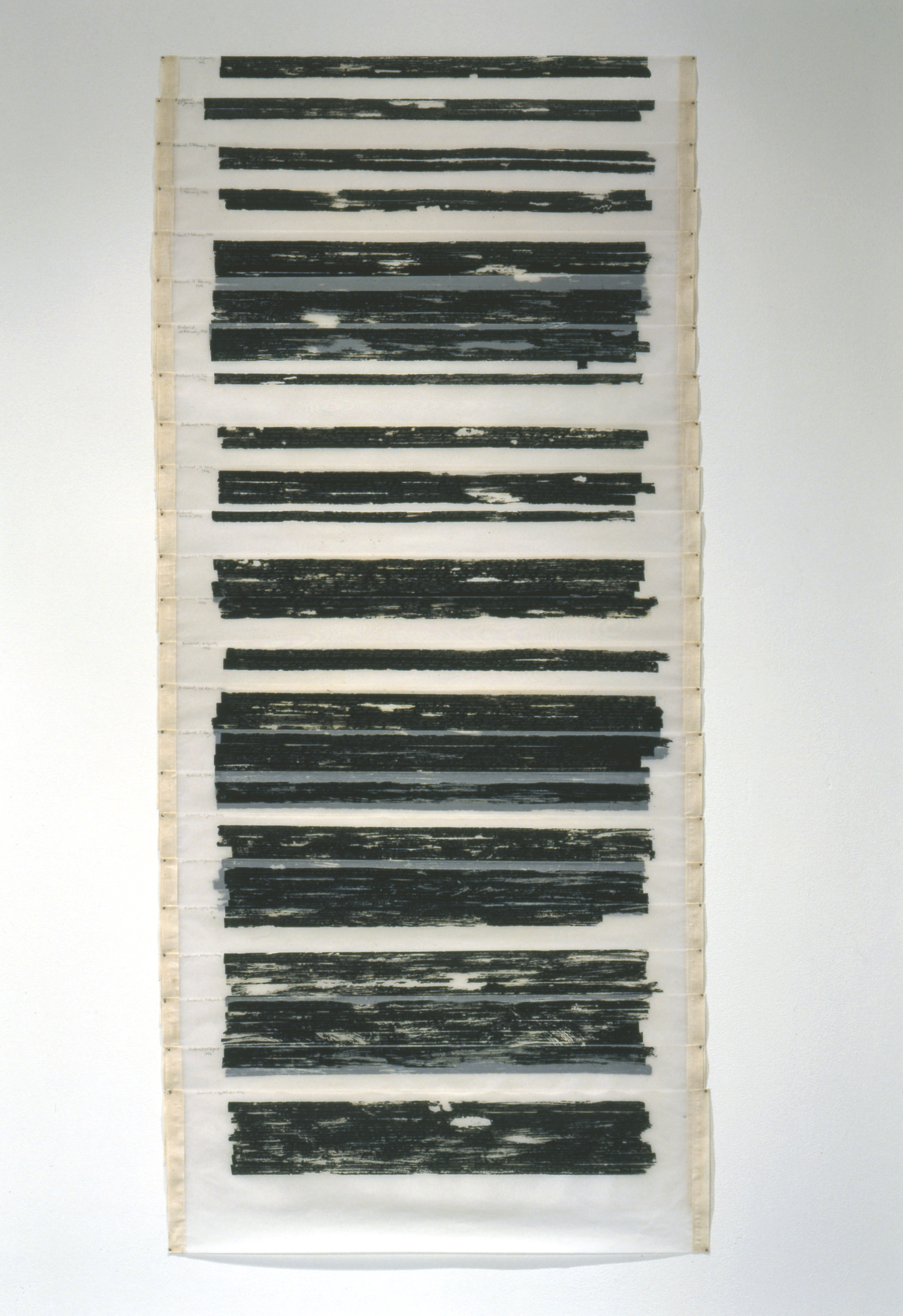 january 20, 1942 January 20, 1942. Typewriter film carbon and pencil on vidalon, cloth, nails. Installation: 90 x 137” (installation view Momenta Art, Brooklyn). Details